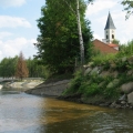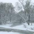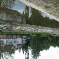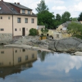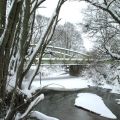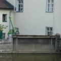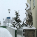 Das Winterwunder von Gmünd Nepomuk gehört auf seine Brücke Es hatte die ganze Nacht geschneit und es schneite den ganzen Vormittag weiter ohne Unterlass. In Wien brach der Verkehr zusammen an diesem Fenstertag zwischen Sonntag und Heilige Drei Könige am Dienstag. Die B41 von Oberlainsitz nach Gmünd dagegen war einwandfrei zu befahren, also brachte ich die Schier wie vorgehabt zum Stöckl, damit die Kanten nachgeschliffen werden, die Bindung eingestellt und der Belag ausgebessert wird. Die Chefin dort kehrte Schnee vom Eingang weg, der Wind blies doppelt soviel wieder zurück. Sie stöhnte über die modernen großen Fenster, die bis zum Boden reichen und durch deren Rahmen die Feuchtigkeit des Schnees eindringe. Hinten in der Werkstatt beschied man mir, dass es zwei Stunden dauern würde, bis die Schier fertig wären. Wurscht, gehe ich derweil zur Lainsitz, dachte ich mir, machst ein paar Bilder von dem Stück nach der Johannesbrücke, es fehlt dir ja sowieso noch die ganze Strecke von dort bis zur Ganausbrücke bei Breitensee in der Sammlung. Das Auto parkte ich mit Mühe gegenüber dem Kino Prinz, zum Glück war es noch zu früh, sonst wäre ich vielleicht bei "Findet Nemo" gelandet oder in "Herr der Ringe III", 16:45 bzw. 20:15. Der Abendfilm wird hier gleichzeitig mit dem Hauptabendprogramm des ORF gestartet, ein ORF 3 quasi, das lokal gesendet wird. Unten, an der Kreuzung vor der Brücke unterhalte ich mich mit der frierenden Statue des hl. Johannes von Nepomuk, die ein wenig traurig wegen des Wetters, aus einem ganz anderen Grund aber vollkommen down ist. Bis 1884 durfte sie auf einem Pfeiler der alten Holzbrücke in der Mitte des Flusses über dem fließendem Wasser thronen. Dafür hatte sie Brücke und Mensch vor Hochwasser zu bewahren. Dann rückte man sie herüber zur Bodenstorfermühle, wo sie seitdem im Winkerl stehen muss. Und das ganz ohne eigenes Verschulden! Der Bezirksstraßenausschuss hatte eine eiserne Brücke errichten lassen, die so schmal war, dass nicht einmal für Fußgänger genug Platz war, schon gar nicht für die Statue.1) "Ich würd' mich nach der Versetzung auch nicht mehr so richtig zuständig fühlen für die Wassergüss", sag' ich zu ihr. "Aber vielleicht denkt man wieder um, nach dem Hochwasser vor eineinhalb Jahren, der Versetzungsgrund ist mit dem Bau einer neueren Brücke weggefallen, man könnte Sie relokalisieren." Wie alt ist die Nepomukstatue? Die Aufschrift am Sockel ist ein Chronogramm, hervorgehobene Buchstaben des Textes sind als römische Ziffern zu verstehen: "DIVUs Ioannes nepoMVCenVs sIt noster perpetVVs patronVs CVstosqVe honorIs m. t. c. d. g. precatur". Wenn ich richtig zusammenzähle, ergibt das die Zahl 1749. Wenn ich richtig abziehe, dann steht die Statue genau 255 Jahre, davon 135 Jahre auf der Brücke und - seit der Strafversetzung - 120 Jahre an der Kreuzung. Am Abend nach dem Abenteuer versuchte ich vergeblich das Jahr der Errichtung auf der Homepage der Stadt finden, dafür bekam ich die viel wichtigere Information, dass die Statue "1959 über Auftrag der Gemeinde und dann 1975 anlässlich des Neubaues dieser Brücke vom Bundesland Niederösterreich neuerlich restauriert" wurde. 2) Ehre wem Ehre gebührt! Ein schönes zusätzliches Datum wäre 2004 - für die Rückbringung der Statue zu ihrem ursprünglichen Aufstellungsort in der Mitte der Brücke! Johannes Nepomuk kam 1396 zu Tode auch in Wassern unseres Flusses, als er nach Gefangenschaft und Folter in Prag in der Moldau ertränkt wurde. Erst Jahrhunderte später wurde er in Böhmen, insbesondere von den Jesuiten, als Gegenfigur zu Jan Hus aufgebaut und posthum zum populären Star der Barockzeit gemacht. In Volksstücken und Liedern ließ man ihn aufleben, auf der Karlsbrücke in Prag errichtete man 1693 die erste Nepomukstatue, die zur Vorlage für Tausende ihrer Art in unseren Ländern wurde. In Gmünd steht Nepomukstatue Nr. 1 an der Lainsitz, in St. Martin oben die erste Statue am Fluss überhaupt: sie stellt den heiligen Josef dar. "Mir fehlen noch Bilder von der Lainsitz von hier bis Breitensee. Aber bei dem Schnee und bei der Kälte ist nicht daran zu denken, die Strecke abzugehen. Es müsste nur für zwei Stunden Sommer sein!" klage ich dem aus Pomuk. Kaum gedacht, ist es wirklich Sommer, der Fluss vom Eis befreit, meine Buben stehen auf einmal lärmend um mich herum und schimpfen, dass sie mitgehen müssen! Das Datumsfeld meiner Uhr zeigt die seltene 32, dem Wetter nach ist es August. OK, dafür werde ich auf jeden Fall in meinem Beitrag über diese Strecke schreiben, dass deine Statue auf die Brücke gehört, gütiger Jan Velflín aus Pomuk! Raus aus der Stadt Die Johannesbrücke in Gmünd führt unmittelbar zum Grenzübergang nach Tschechien. Etwas weiter oberhalb ist der Bach Grenzfluss gewesen, hier, wo die Lainsitz zu einem weiten Linksbogen ansetzt, gehören noch einmal beide Ufer zu Österreich. Der Fluss kommt waagrecht zur Brücke und stürzt danach, zwischen großen runden Granitrestlingen eine beträchtliche Stufe hinunter. Zuletzt ging es weit oben im Weitraer Ledertal so stürmisch her, dazwischen liegt ein Dutzend Kilometer des gemächlichen Dahinfließens. 100 Jahre: Fünf Mühlen / Keine Mühle Es ist keine Frage, die Kuenringer haben ihre zwei Städte an der Lainsitz dorthin gesetzt, wo der Fluss Kraft genug hat, um die Wasserräder der unterschiedlichsten Gewerbe zu treiben. Diesem Standortvorteil verdanken Weitra und Gmünd ihre Entstehung. Alle Gmünder Wasserkraftanlagen waren rechts des Flusses, also auf Stadtseite, entlang der Mühl(!)gasse aufgefädelt. Komlosy3) listet 1997 auf: