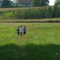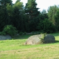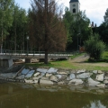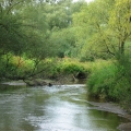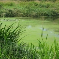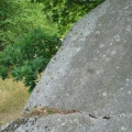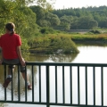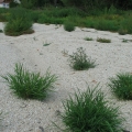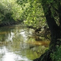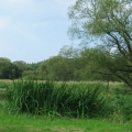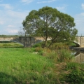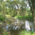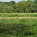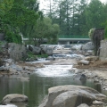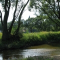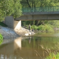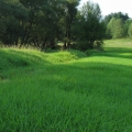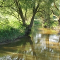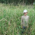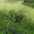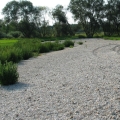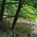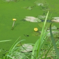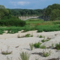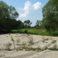 Heute ist der Fluss hier, wie in Weitra, als Energiespender ungenutzt. Doch nicht nur das. Wertet man nur nach dem, was man als unvoreingenommener Wanderer sieht, so erscheint der Fluss als ungeliebter Teil der Stadt, der wie ein behördlich einquartierter Fremder geduldet werden muss, dem man aber bei jeder Gelegenheit spüren lässt, dass er lästig ist, indem man ihn schlecht behandelt. Zugegeben, die Lainsitz hat letztes Jahr im Sommer gerade in Gmünd sehr gewütet und vieles zerstört. Schuld kann man einem Wesen der unbelebten Welt aber keine zuschreiben, schuld sind doch einzig und allein nur die, die das Bauen so knapp neben dem Fluss genehmigen und jene, die dort Häuser und Mehrfamilienhäuser bauen. Nachdem der Fluss die Menschen sein Wüten spüren ließ, drehten die Gmünder den Spieß um und ließen ihrerseits ihre Wut an ihm aus. Mit hässlichen unbehauenen Steinplatten mauerten sie die Lainsitz ein. Sie läuft jetzt Spießruten von der Brücke bis zur Mündung an der Stadtgrenze, man eskortiert sie gewissermaßen auf kürzestem Weg hinaus vor das Tor und lässt sie keinen Millimeter mehr links oder rechts abweichen. Könnte ihr sonst einfallen, hier zu bleiben und sich in der Stadt verstecken, die Diebin! Vernachlässigtes Gemünde Das Gemünde selbst, das der Stadt den Namen gab, gestaltete man im Stil einer öffentlichen Bedürfnisanstalt. Geschieht ihr recht der Lainsitz, wird man gedacht haben, als man ein unansehnliches "Wasserwerk" und einen öden Parkplatz für die Besucher der Innenstadtgeschäfte an die Mündung setzte. Eine städtebaulicher Makel und eine vergebene Chance. Unverständlich, wo man doch sonst in der Stadt auf den Umstand, am Zusammenfluss zweier Flüsse zu liegen, so viel Wert zu legen scheint. Ein Tourist, der daraufhin die Mündung besucht, muss enttäuscht sein! Auf der Homepage von Gmünd präsentiert man sich stolz als Mitglied des Vereins "Gmünder in Europa", man schickt Delegationen zu den alljährlichen Treffen, 2001 veranstaltete man die Hauptversammlung der "Gmünder in Europa" hier in der Stadt.5) "Der Zusammenfluss von Lainsitz und Braunau symbolisiert auch das Logo der Gmünd-Homepage" heißt es an der angesprochenen Stelle. Wäre das Logo nicht, wer weiß, vielleicht hätten die beiden Flüsse sich ohnehin schon einen anderen Ort für ihren Zusammenfluss gesucht? Hinaus in die Freiheit Ein paar gemeinsame Fließsekunden und unsere Lainsitzbraunau ist frei! Ein überwältigender Kontrast zur zerschundenen Strecke davor. Die "Lainsitzniederung", seit wenigen Jahren Naturschutzgebiet, präsentiert sich in voller Pracht. Gerade das Hochwasser des letzten Jahres dürfte die außergewöhnliche Vielfalt der Natur in diesem Sommer bewirkt haben. Das alte Gras, das alte Schilf wurde überdeckt von Schwemmsand und Kies, auf den Schotterflächen wachsen exotische Pflanzen, die großen Schilfflächen zeigen sich im tiefen, frischen Grün junger Triebe. Ungenutzter Reichtum Lainsitzniederung Es ist nicht leicht, dem Fluss durch diese Wildnis zu folgen. Kein Weg, kein Steg, der für Wanderer angelegt worden wäre. Hält man bewusst die Menschen von diesem Naturwunder fern oder ist es gleich die nächste Chance, die Gmünd nicht nutzt, nicht nutzen kann? Welche andere Stadt leistet sich ein Naturschutzgebiet dieses Ausmaßes und versteckt es vor eventuell interessierten Besuchern? Uns soll's recht sein, wir sind es gewohnt, uns neben dem Bach durchzuschlagen, und der Lainsitz ist es gleich, ob sie bestaunt wird oder nicht. Direkt von der Mündung weg ist auf der linken Seite gar kein Durchkommen möglich. Man muss um einige Häuser herum, um wieder zum Fluss zu gelangen, der jetzt durch ehemalige Bachwiesen frei dahinpendelt. Exotische Pflanzen haben sich auf dem angeschwemmten Kies angesiedelt. Durch Schilf und hohes Gras gelangen wir zu einer Stelle, an der die Lainsitz links eng an die Talwand heranströmt. Oben auf der Kuppe stehen die letzten Häuser von Böhmzeil. Ein mit kleinen kreisrunden Löchern übersäter und von Flechten bewachsener Restling bei einer Eiche zieht uns an. Vorbei an einem streng abgezäunten Gärtchen mit allerlei Sträuchern und Bäumchen kommen wir zu einem neuzeitlichen Parallelstrom der Lainsitz, der Schmalspurbahn Gmünd-Litschau. Da unten im Tal wieder einmal kein Weiterkommen möglich ist, folgen wir dem mehr als hundert Jahre alten Schienenstrang einige Meter oberhalb des Baches. Es gibt gelbe Lainsitzrosen! Ein Weg quert die Schienen, steigt ins Tal hinab, führt durch die Wiesen an seine andere Seite, wohin sich die Lainsitz mittlerweile geschlagen hat, führt über eine Brücke und mündet in die Straße Gmünd-Grillenstein-Eibenstein-Breitensee auf der rechten Flussseite. Gut, dass es diesen Weg gibt, der das Naturschutzgebiet für Spaziergänger wenigstens an einer Stelle in Querrichtung erfahren lässt. So kommt man einmal heran an eine Lahn, die selbst in diesem Sommer, dem trockensten seit Jahrzehnten, mit Wasser gefüllt war. Schilf an den Ufern, die Wasseroberfläche in einem unbeschreiblichen gelben Grün, dazwischen die großen Blätter der gelben Teichrose (nuphar lutea), deren Blüten sich auf festen Stängeln weit herausheben aus der dunklen Suppe. Ein Lahn ist auf gut Deutsch eine Senke oder Einbuchtung, hier eine Delle, die der Fluss selber seinem Tal zugefügt hat. Es sind Altarme, die abgeschnitten wurden und die in jeder Au zu finden sind. Viel Interessantes über die Lainsitzniederung erfährt man in dem Buch "Universum vor der Haustür" von Ernst Wandaller und Dieter Manhart.6) Wandaller gilt als der Vater des Naturschutzgebietes hier am Fluss, er leistet die schwere Aufklärungsarbeit, die nötig ist, um den Menschen den Wert des noch Alltäglichen aber eigentlich schon Gefährdeten begreifbar zu machen. Besonders die Belassung der Veränderungen im Tal, die durch das Hochwasser im vorigen Jahr entstanden sind, dürfte für viele Gmünder nicht selbstverständlich gewesen sein. Am liebst