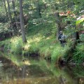 Unten am Fluss fischen einige in der sich weit verzweigenden Lainsitz. Sie