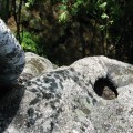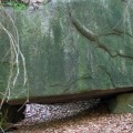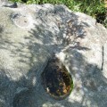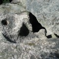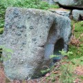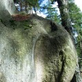 Achtung Staatsgrenze Der Mandlstein ist auch und eigentlich Naturdenkmal! Eine Gruppe von Inschriften habe ich bis jetzt noch nicht erwähnt. Es sind die mehrfach angebrachten Steintafeln, die darauf hinweisen, dass der Mandlstein ein Naturdenkmal sei. Und das schon seit 1927, wie ich dem Bezirksheimatkundebuch entnehme, also lange bevor die vielen Gedenktafeln, der Altar und das Kreuz angebracht bzw. aufgestellt worden sind. Dazu kommen auch noch die Bänke und Buden, die doch nur einmal im Jahr für die Festgäste gebraucht werden. Bitte, liebe Sudeten, achtet trotz eurer Trauer um die verlorene Heimat auch darauf, dass dieses einmalige Naturjuwel Mandlstein nicht unwiederbringlich zerstört wird! Der Fels ist nämlich nicht nur interessant wegen seiner Größe und seines schichtartigen Aufbaus. Dem würden die oberflächlichen Veränderungen nichts anhaben. Bis zu 17m hoch sind die Granitquader auf 6000 Quadratmeter übereinander gestapelt. Der Fels ist aber vor allem interessant wegen seiner vielen Schalen an der Oberseite und der sogar vereinzelt vorkommenden Gruben an den Seitenwänden. In zwei der größeren Schalen oben steht Wasser, das Volk nennt sie Steinbrünnl. Viele der Vertiefungen haben organische Formen und werden wohl auf natürliche Weise entstanden sein. Andere wiederum mit genau kreisförmigem Querschnitt oder äußerst exponierter Lage erwecken zumindest den Eindruck, künstlich gebohrt oder geschliffen worden zu sein. Vielleicht sind es Zeichen einer längst untergegangen Kultur? Dieses Ensemble von eigentümlichen Oberflächenformen wird jedenfalls sehr empfindlich durch das Einarbeiten der verschiedenen Platten gestört. Würdigungstafeln für besondere Verdienste könnten doch auch an Plätzen angebracht werden, die nicht als erhaltenswerte Natur eingestuft worden sind und wo sie von mehr Menschen gesehen werden! Schalensteinberg Der Mandlstein ist nicht der einzige Fels in der Nähe, der mit Schalen übersät ist. Die außergewöhnlichsten Gebilde befinden sich in den sackartigen Mugeln unten in Heinrichs. Der Gipfelfels des nahen Kudelring trägt ebenfalls mehrere Schalen. Man kann fast sagen, dass es auf der mit dem Mandlstein zusammenhängenden Erhebung ungewöhnlich ist, wenn ein mehr als faustgroßer Stein keine Schale trägt! Die Heinrichser haben einen Erlebnisweg angelegt, der fast vierzig Stationen mit immer neuen, aufregenden Naturerscheinungen aufwarten kann! Holen Sie sich in Heinrichs bei den Paschers (Hausnr. 65) die Begleitbroschüre und dringen sie ein in die Welt der Schalensteine. Ihre Phantasie wird sie weit aus dem Alltäglichen entführen, viel weiter, als sie jeder Charterflug bringen könnte! |