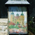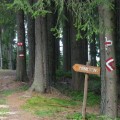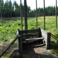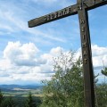 Hass und Zank zu hegen Adalbert Stifter Gedenke der toten Heimatvertriebenen! Auf dem einfachen Granitpfeiler davor, der als Katheder dient, ist ein einfaches Bild der Wallfahrtskirche Maria Trost von Brünnl angebracht. Diese Kirche war früher für Deutsche wie Böhmen ein lebendiges religiöses Zentrum. In der Zeit des Eisernen Vorhanges gab es keine Möglichkeit mehr, diese Kirche zu besuchen. Auch für Tschechen war der Ort ab den 50er Jahren verboten. Vom Mandlstein sieht man direkt auf diese nur sechs Kilometer entfernte Prunkkirche gegenüber. Als nächstes trifft man auf ein großes Holzkreuz, auf dessen Balken groß geschrieben steht:
