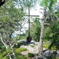 Hinter dem Kreuz ist eine Metallplatte im Fels eingelassen:
