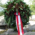 Darunter ein frischer Kranz mit demselben Text und der Namensbezeichnung "Klemensgemeinde Außenstelle Gmünd"