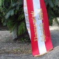 auf rotweißroten Schleifen.