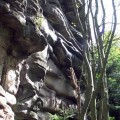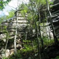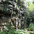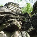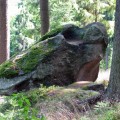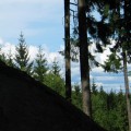 I ch bin allein heute hier heroben. Der Wind zieht stark von Böhmen herein, der nächste Ort ist kilometerweit entfernt, rundum nur Wald. Der mächtige Fels hebt einen über die Bäume, gegen Westen und Norden blickt man Hunderte Kilometer weit aus. Die am Fels angebrachten Zeichen werden die meiste Zeit keinen Leser haben, kein verständiges Gegenüber. Nicht einmal Vögel höre ich hier heroben, sie würden wenigstens die Inschriften sehen, wenn auch nicht verstehen. So bleibt nur der Himmel darüber, der vielleicht leer ist.