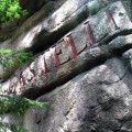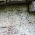 Neben diesen vielen, von Sudetenverbänden stammenden Mahninschriften gibt es noch einige persönliche Gravuren ohne bedeutenden Hintergrund. Oft sind es nur Initialen und eine Jahreszahl, einmal findet man an prominente Stelle ein "A.R." mit einem von einem Pfeil durchbohrten Herzen. Manche mit Farbe oder Stift aufgetragenen Zeichen sind nicht mehr zu entschlüsseln, im Gegensatz zu einem deutlichen "Fuck" am Fuß des Felsens. Ganz und gar nicht zu übersehen ist wiederum das in riesigen Letter gemeißelte I◊F◊CASTELLI◊ ebenfalls unten an der großen, nach Westen gerichteten Wand des Felsens. Meines Wissens stammt es von einem Weitraer Castelli-Verein, leider sind mir aber nähere Umstände nicht bekannt, außer natürlich, dass der bekannte Dichter Ignaz Franz Castelli (1781 - 1862) die Ferien bei seinen Eltern in Weitra verbrachte. Sein Vater wohnte nämlich nach der Pensionierung in dem "Castellihaus" genannten Haus bei der Weitraer Stadtkirche. Weitere Schriftzeichen finde ich auf einem Schild:
